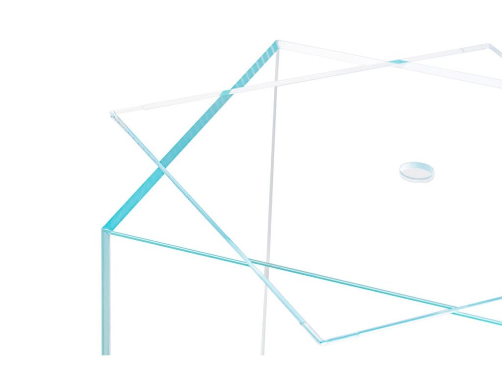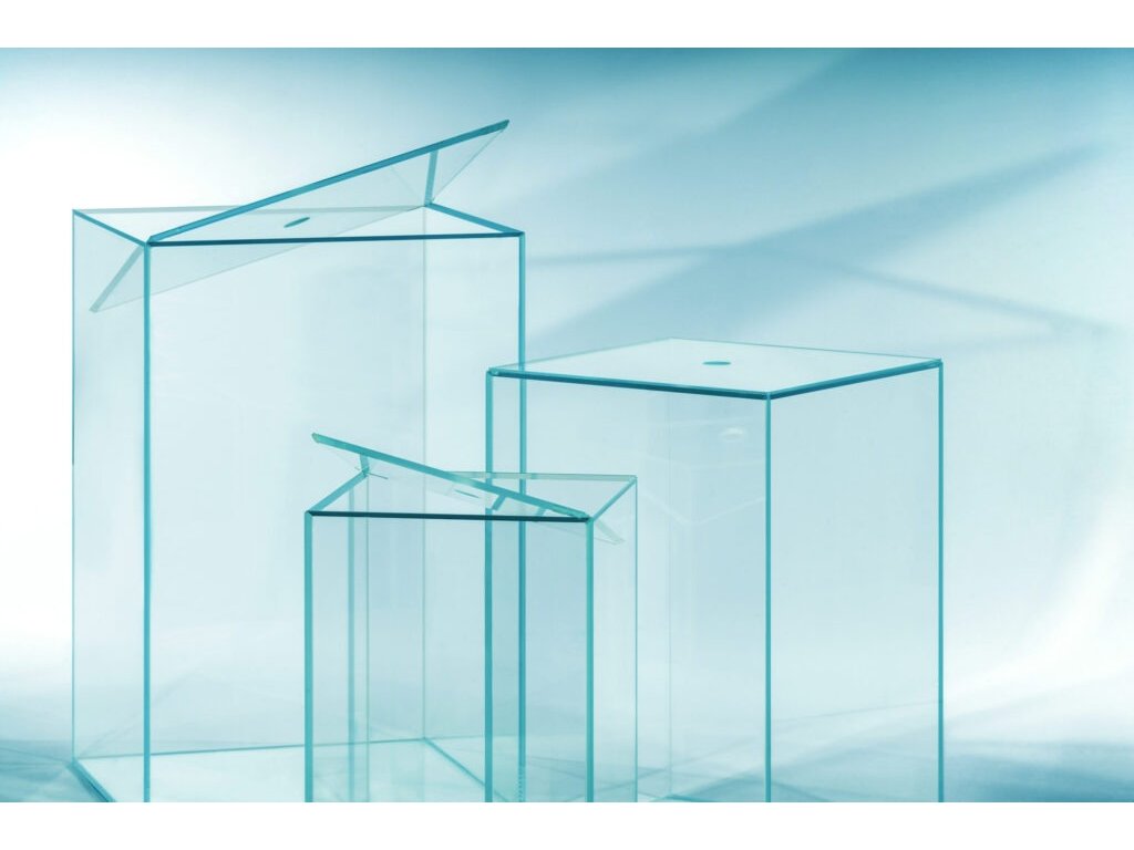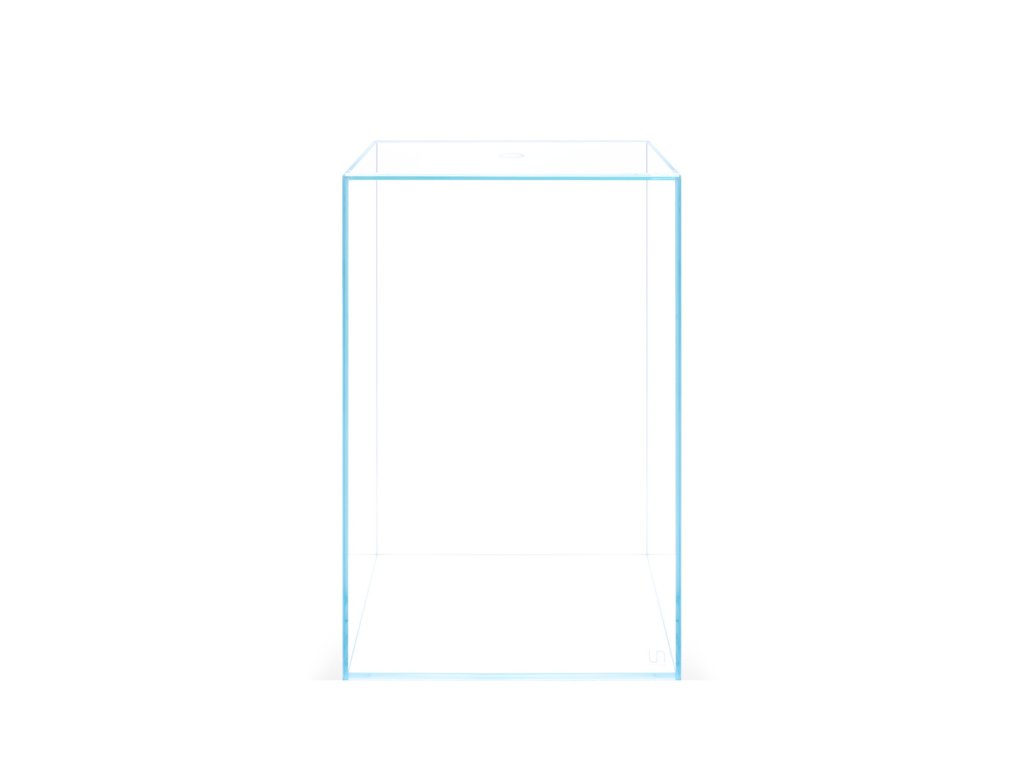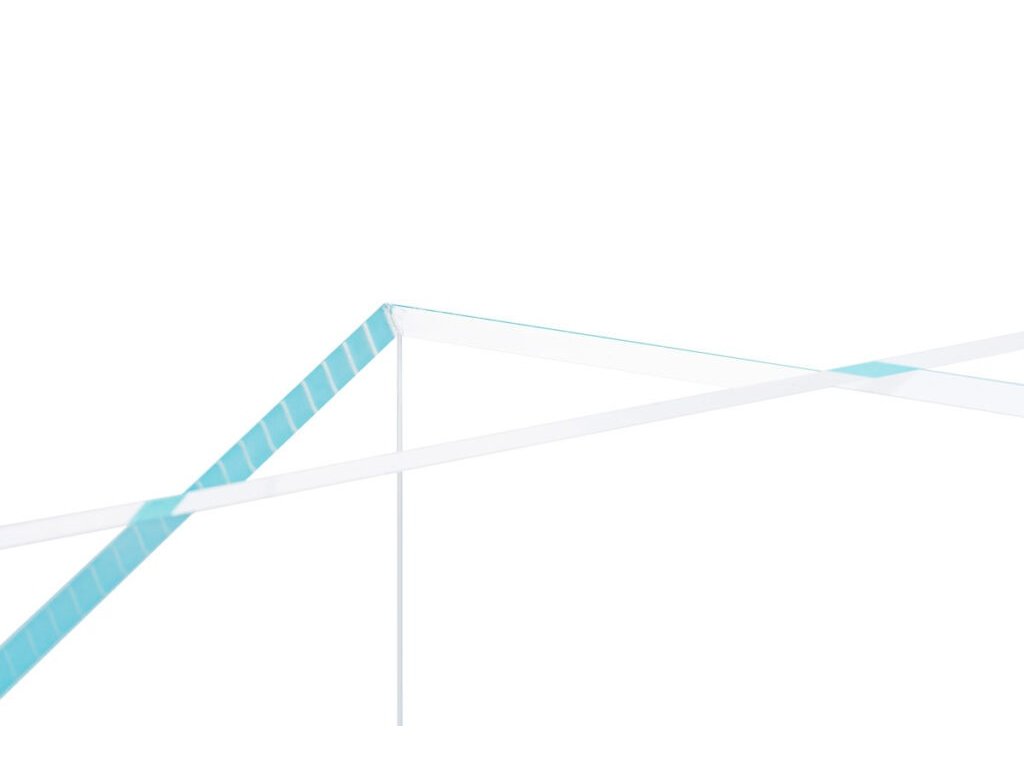 Každé akvárium Prism je vyrobeno z ultra čirého skla s nízkým obsahem železa (low iron glass), které zajišťuje výjimečnou průhlednost a přirozené podání barev. Hrany skla jsou přesně opracované v úhlu 45° a spojeny čirým silikonem bez přesahů, čímž vzniká dojem, že stěny akvária volně splývají do jednoho celku.