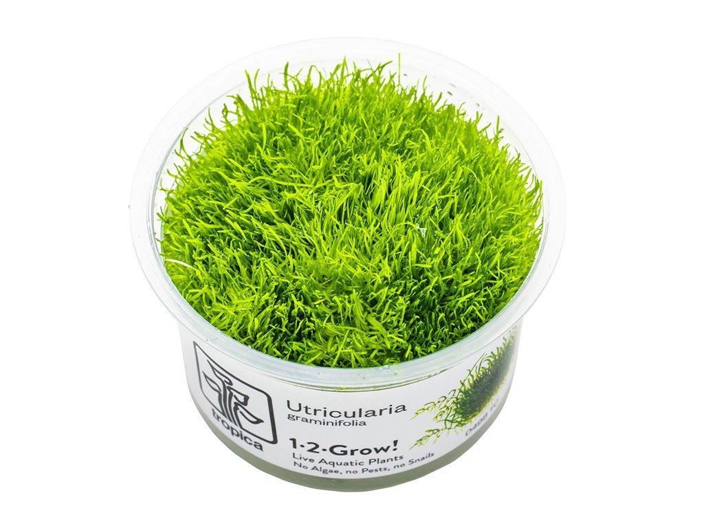 Popis morfologie a kultivační metody: Utricularia graminifolia patří mezi nejhezčí kobercové rostliny. Pokud chcete tento druh úspěšně pěstovat, vytvořit z něj koberce a udržet je po dlouho dobu v nádherném stavu musíte této rostlině dopřát silnější osvětlení, dostatek CO2 a živin-idální je použití kvalitního substrátu typu ADA Amazonia, Shirakura, atd..., ve kterých rostlina ochotně zakořeňuje a nemá tendence se odtrhávat od dna. Neméně důležitý je dostatek dalších živin jako draslík, fosfor a železo!