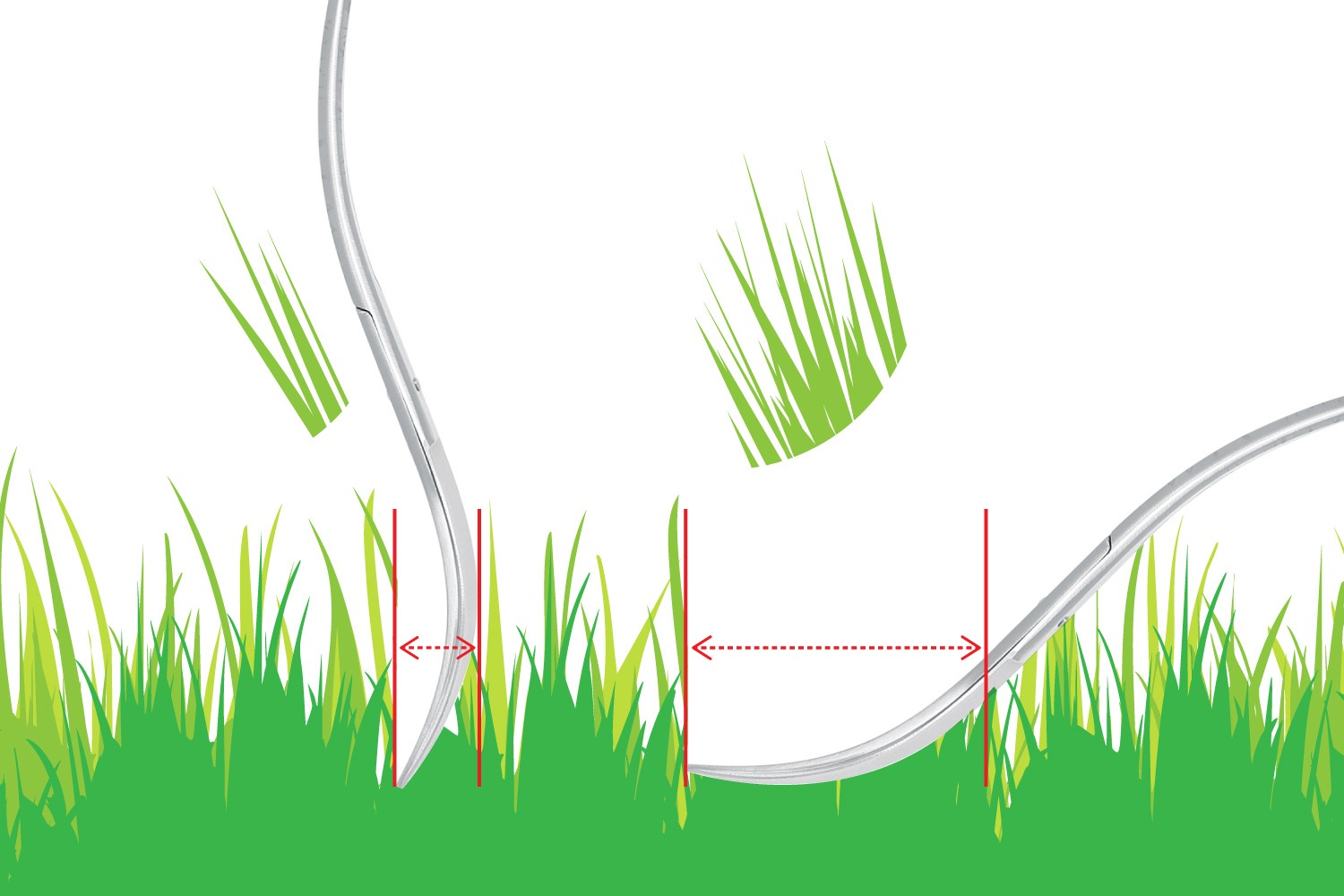Dlouhé, prohnuté nůžky pro střih těch nejjemnějších detailů mez kameny a kořeny