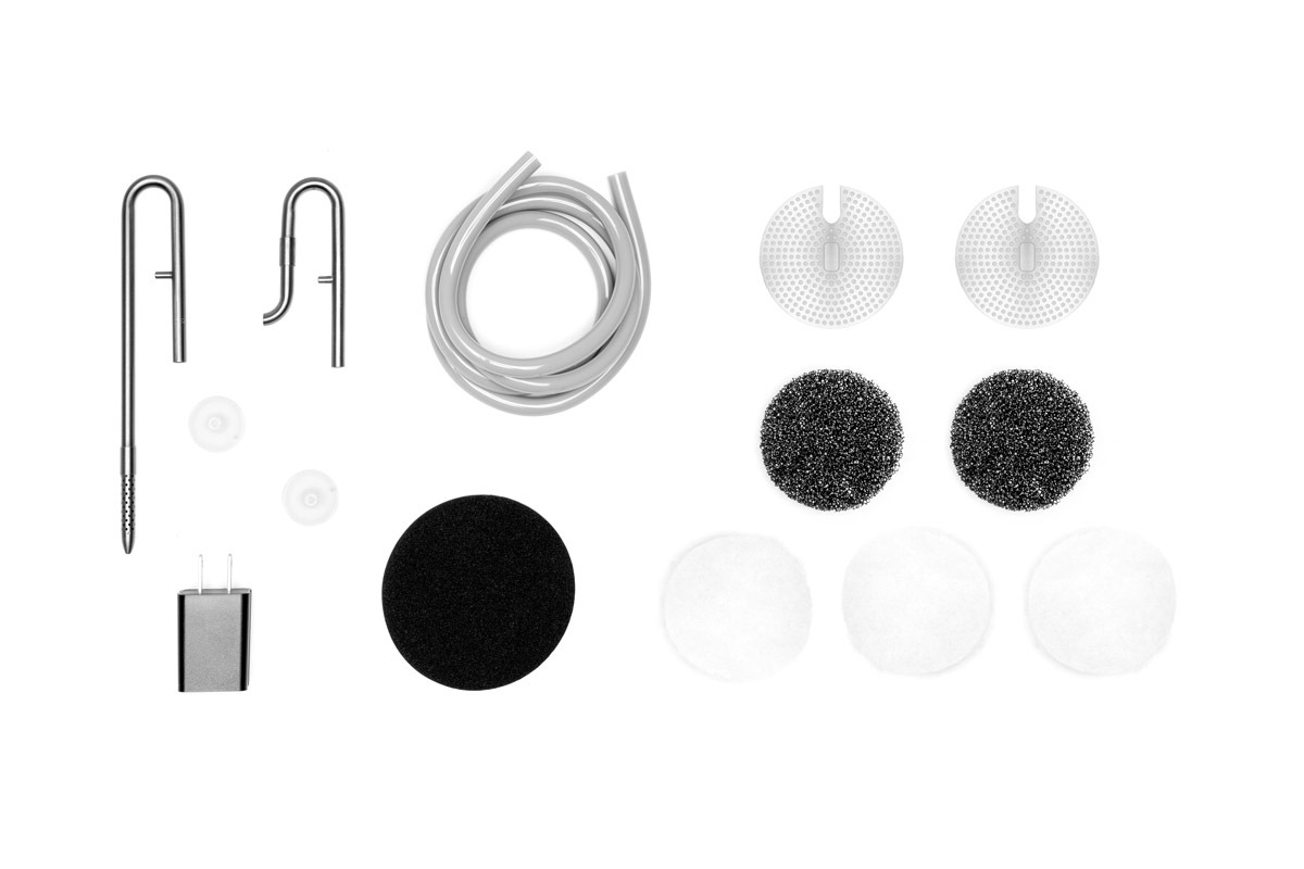 Tělo filtru i pevné trubice jsou vyrobeny z nerezové oceli, která zajišťuje dlouhou životnost a vizuální sjednocení s moderním aquascapingem. Charakteristický tvar připomínající plechovku podtrhuje minimalistický design a umožňuje nenápadné umístění vedle nádrže.